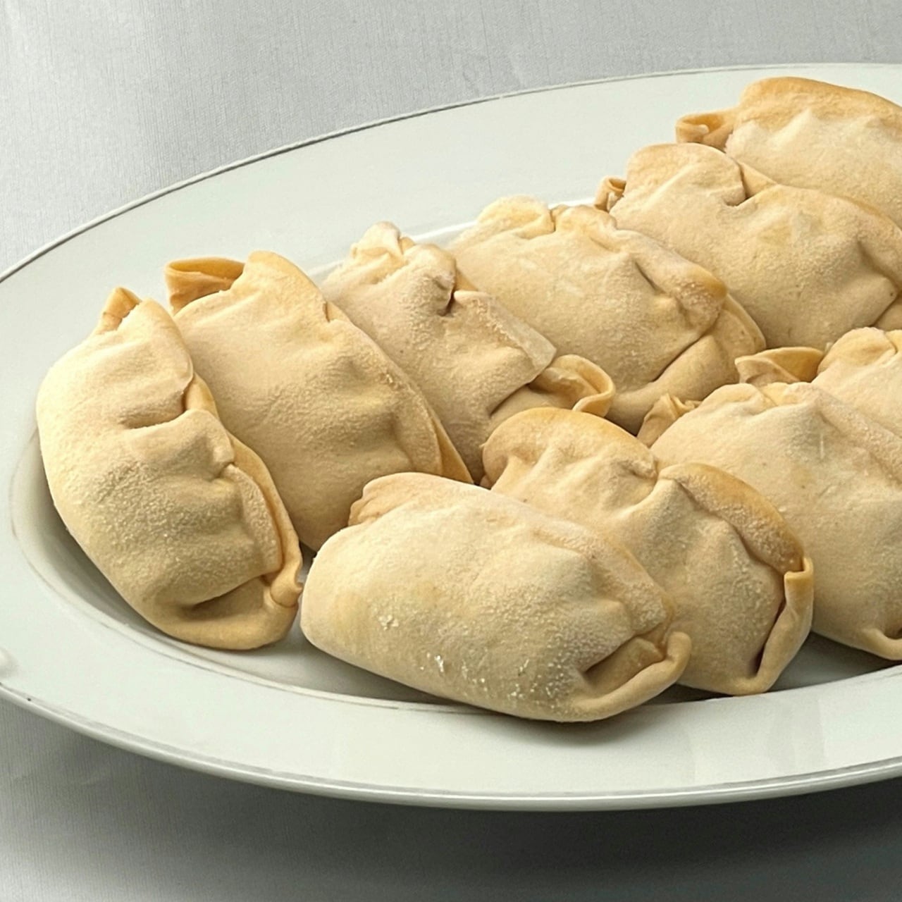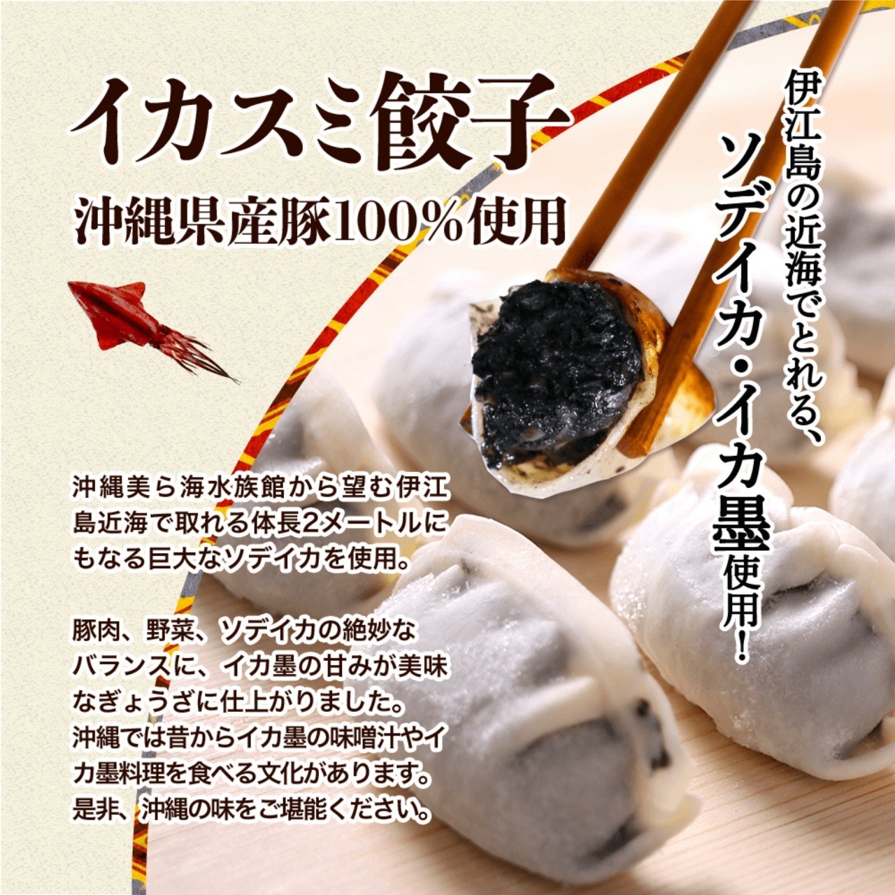 伊江島近海でとれるソデイカ・イカ墨を使用。イカ通には堪らない逸品。 絶妙なバランスに、イカ墨の甘みが美味な餃子です。