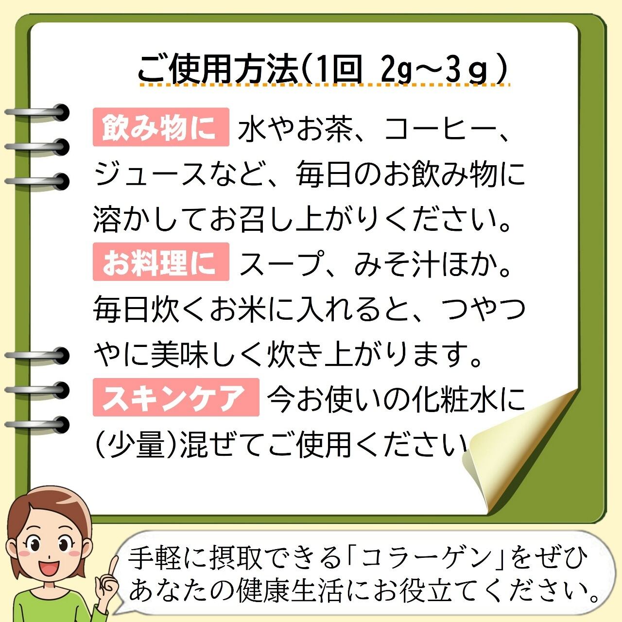 コラーゲンパウダーのお召し上がり方と使用方法