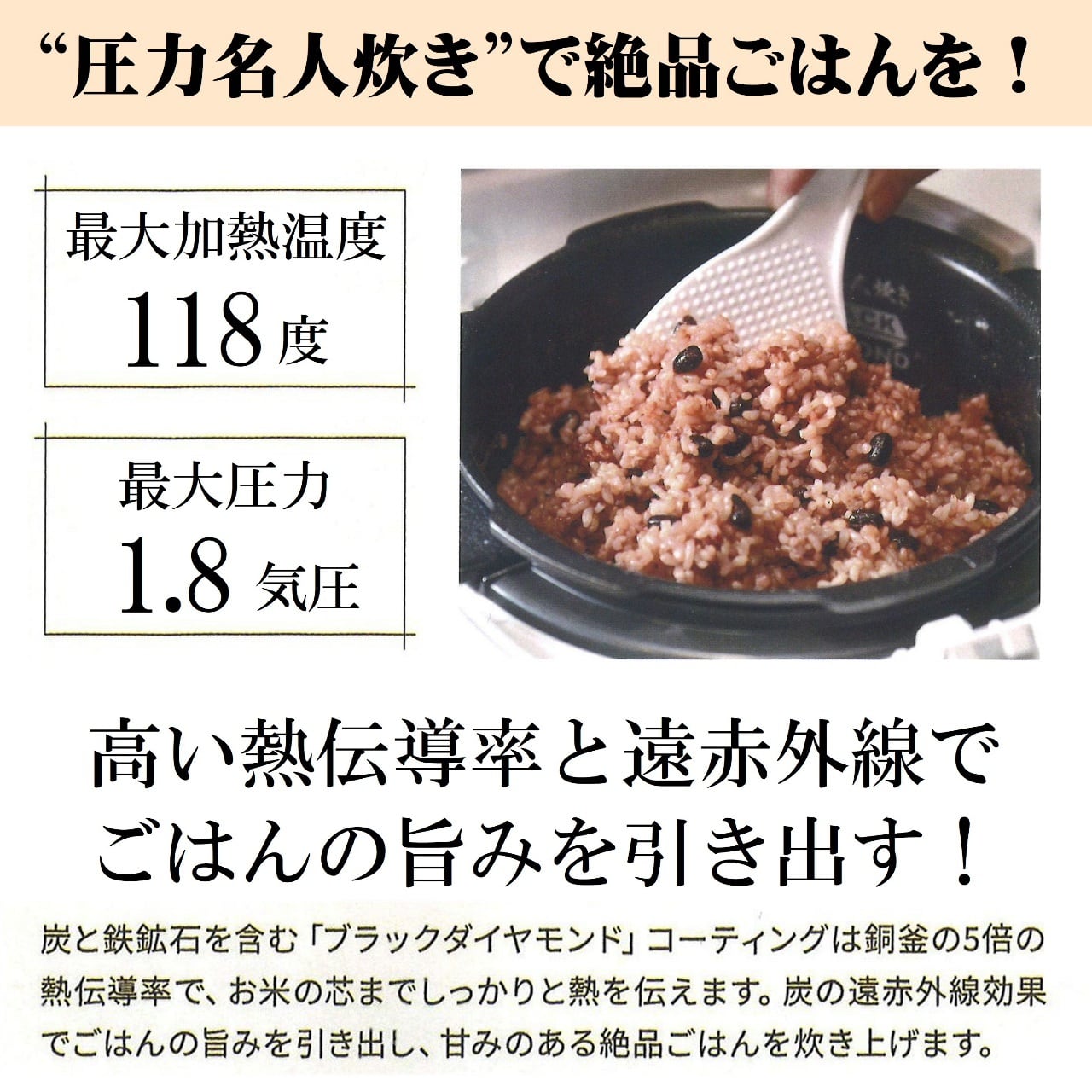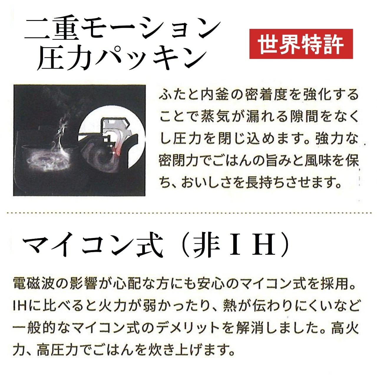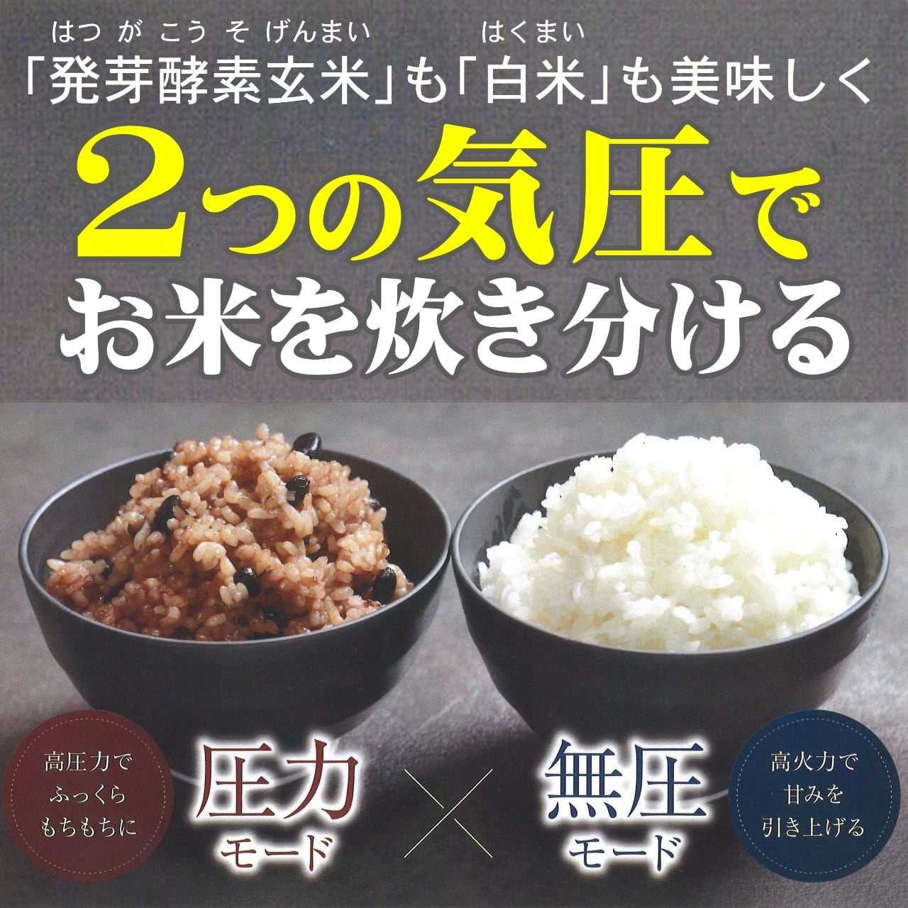 高圧力でふっくらもちもちに仕上げる圧力モードと、高火力で甘味を引き上げる無圧モードで使い分け可能に。