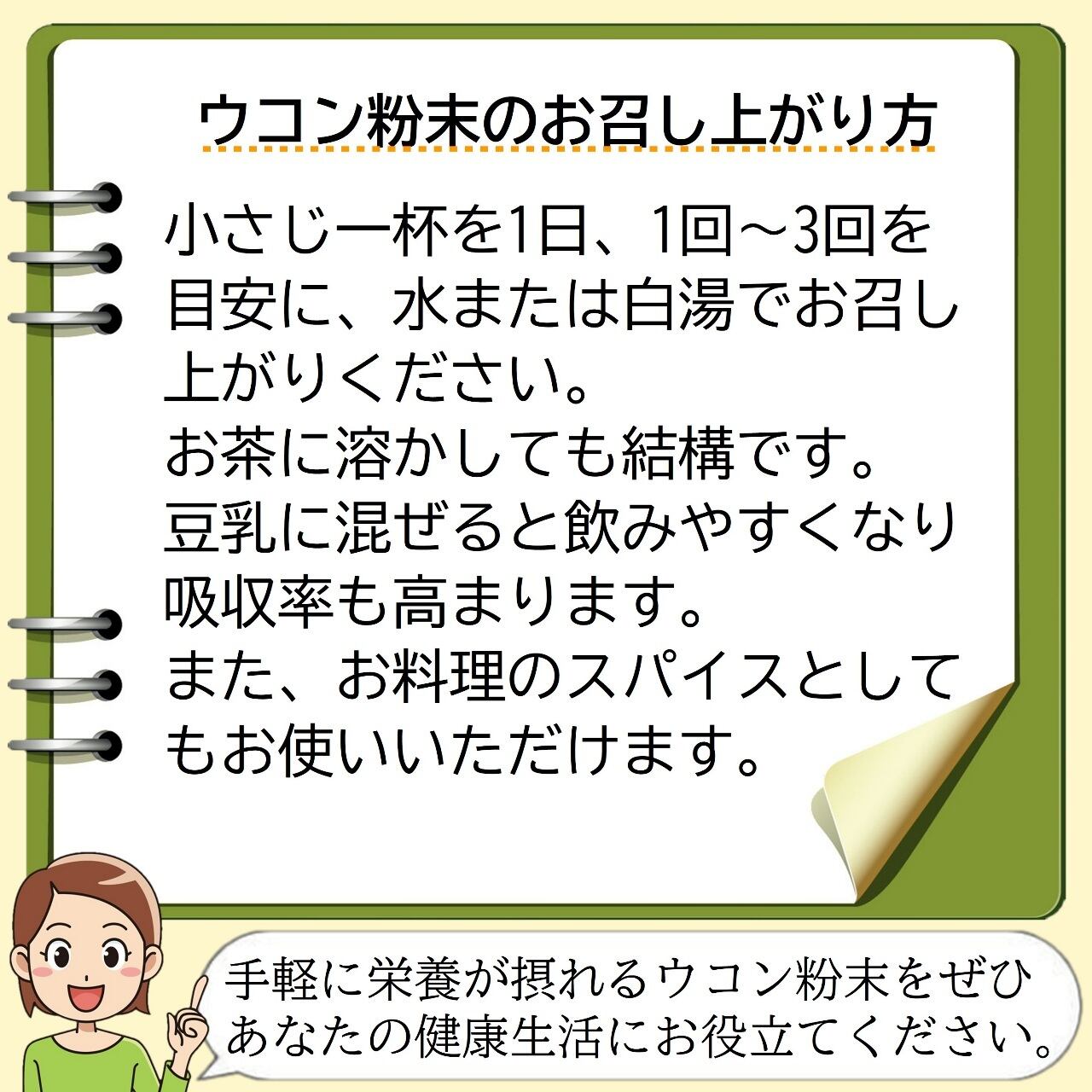 手軽に健康的な食生活が送れる秋ウコンパウダーをぜひ、あなたの健康管理の一助として、お役立てください。