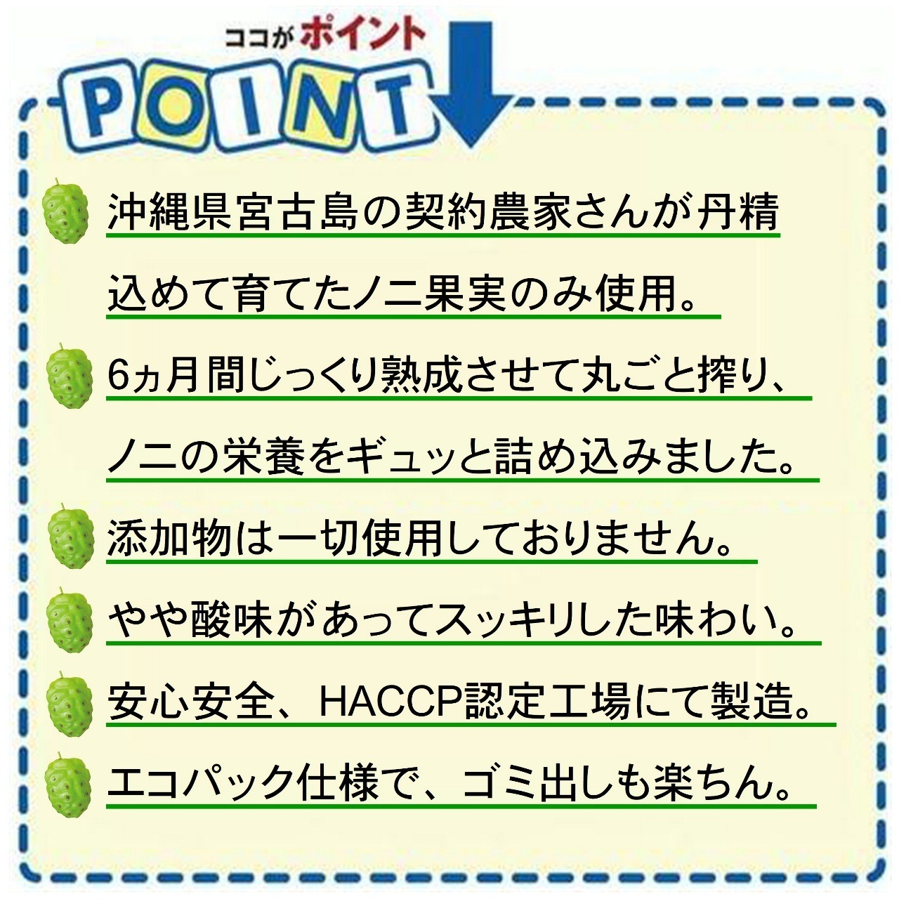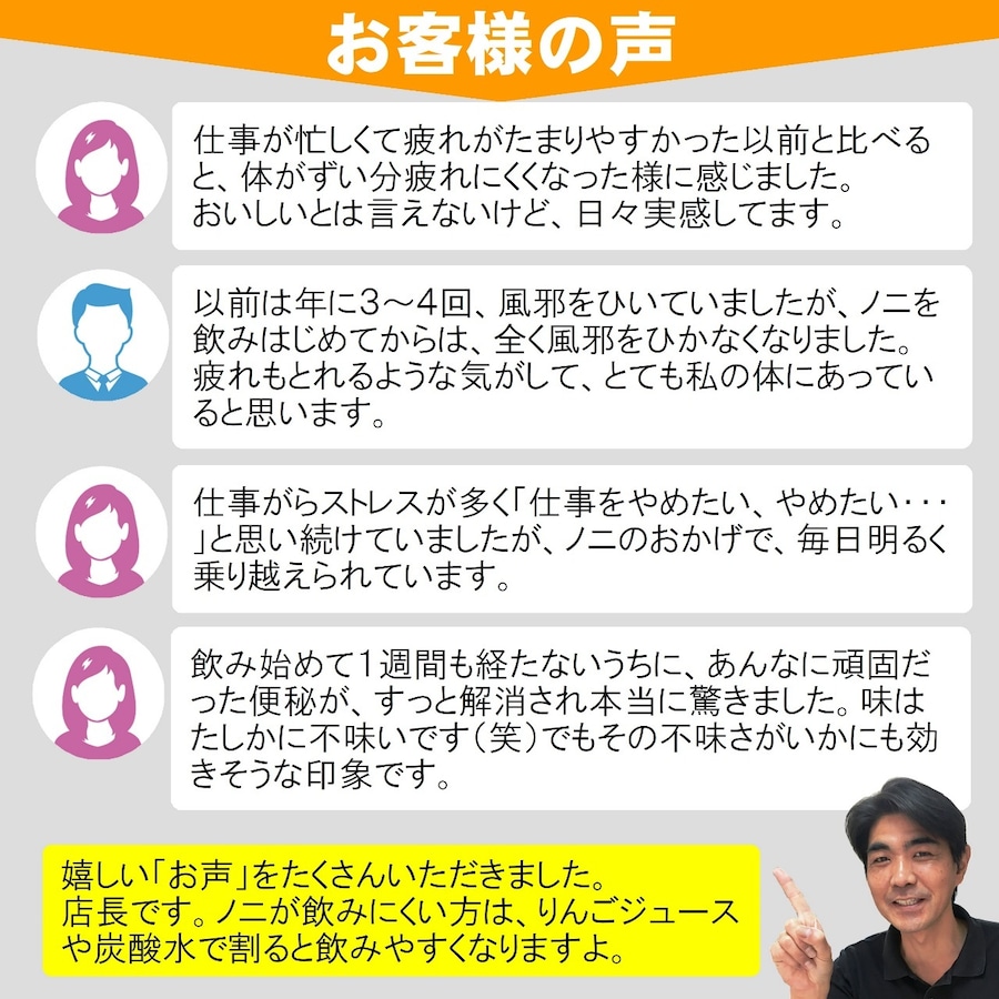 ※沖縄県産ノニは、常に味が一定ではありません。収穫時季や天候などによって味が変化します。
