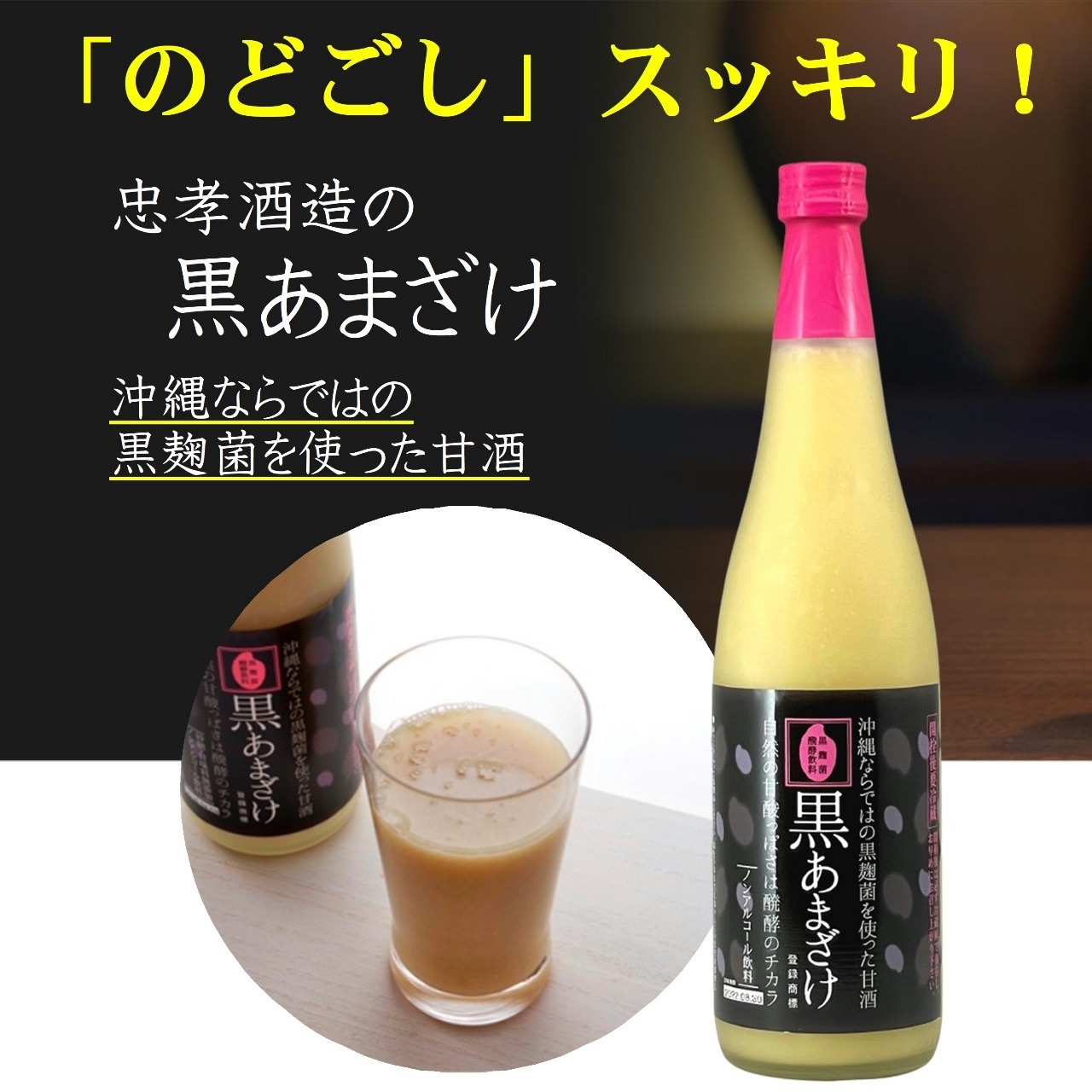 忠孝酒造の黒あまざけは、砂糖や甘味料を一切加えず、黒麹菌を使うことによってクエン酸が豊富に含まれています。