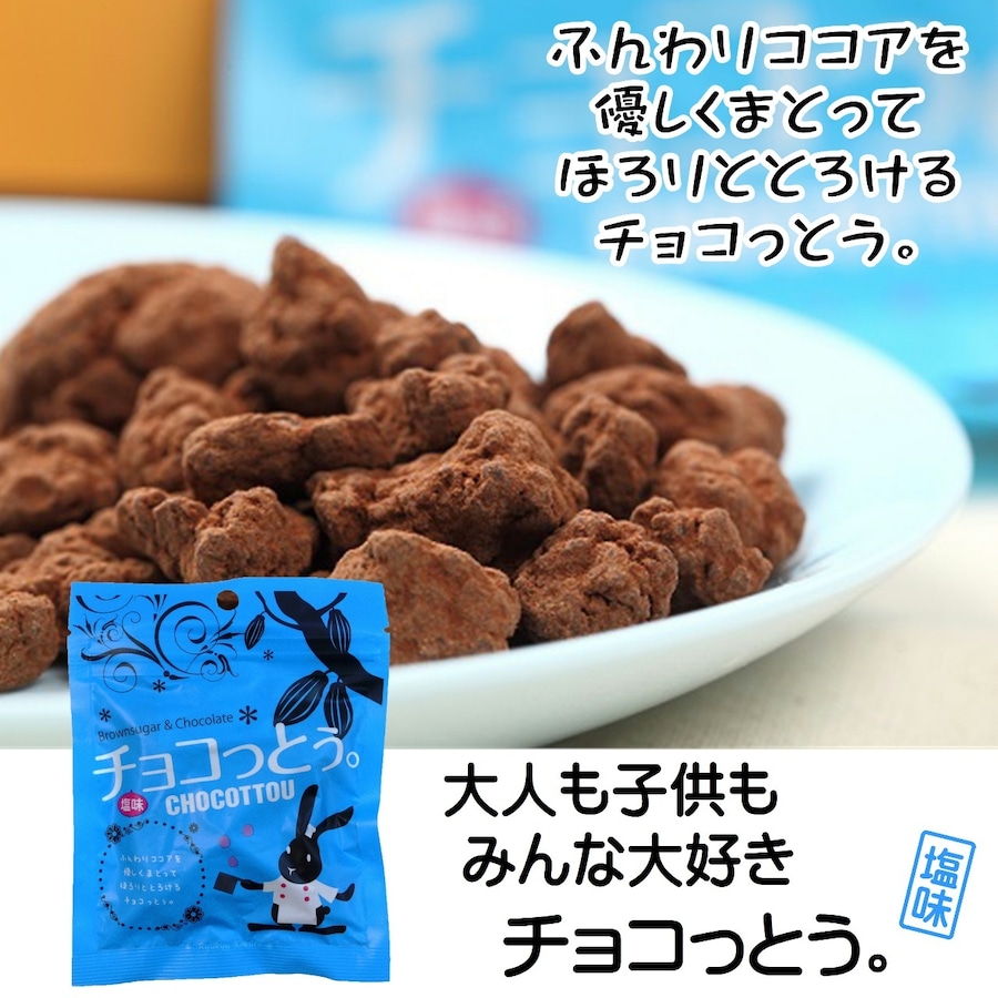 みんなの大好きなチョコレートと、沖縄産黒糖のやさしい甘さをほろにがココアで包み込み、さらに塩を加えました。