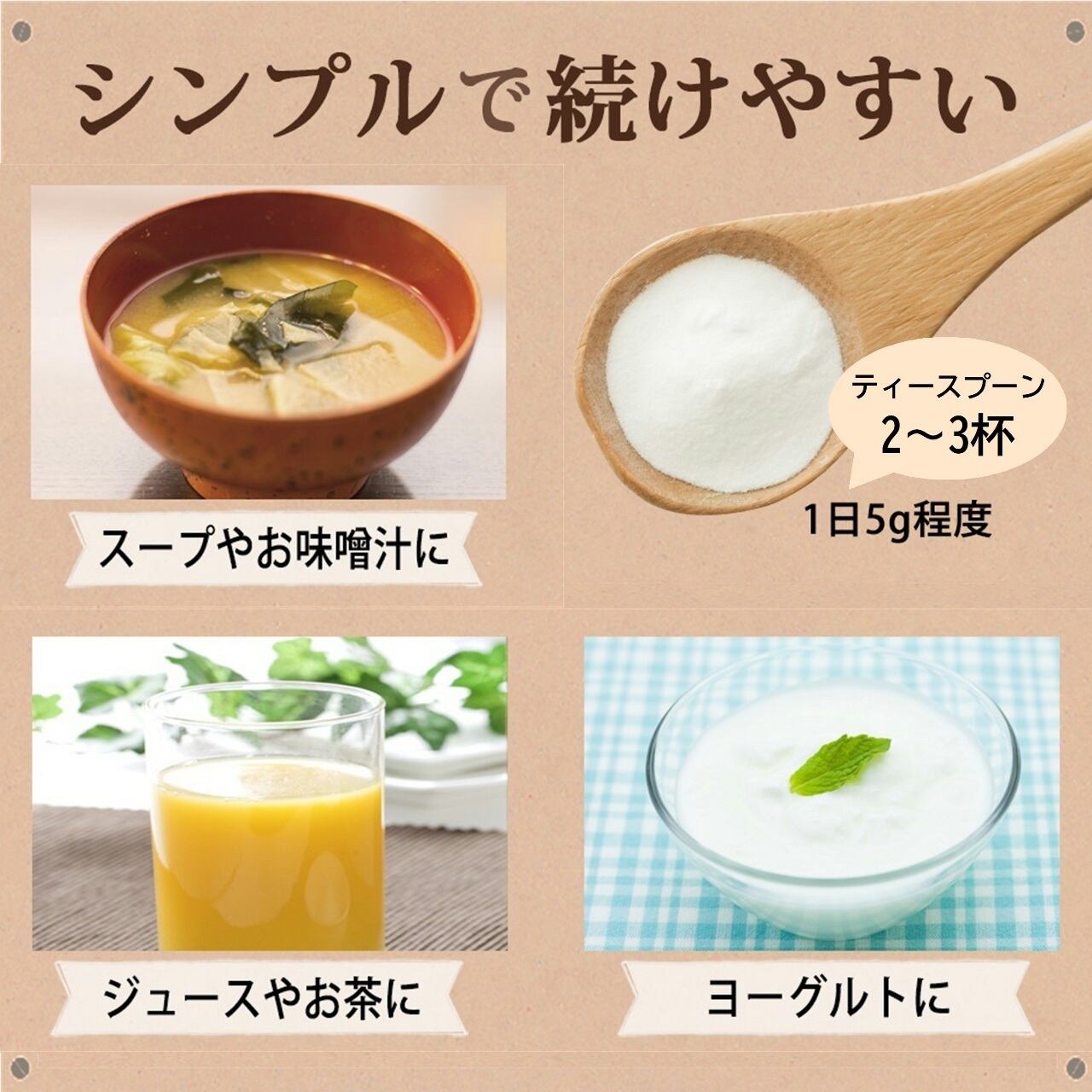 スープやお味噌汁などに混ぜてお召し上がりください。毎日炊くお米に入れると、つやつやで美味しく炊き上がります。