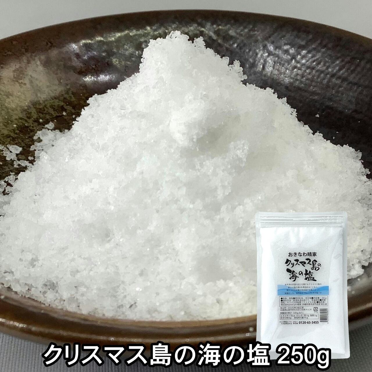 クリスマス島でとれたきれいな海水を煮詰めることなく、太陽や風などの自然の力だけで、じっくりと3ヶ月かけて天日に干しただけの究極の天然塩です。製造は小さな島の人たちによる丁寧な手作業で、化学・人工的な加工を一切していません。まろやかな甘みとすっきりした後味が特徴です。
